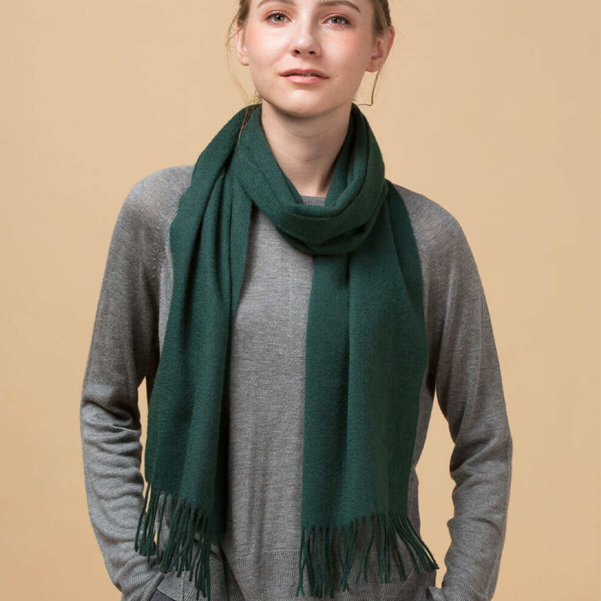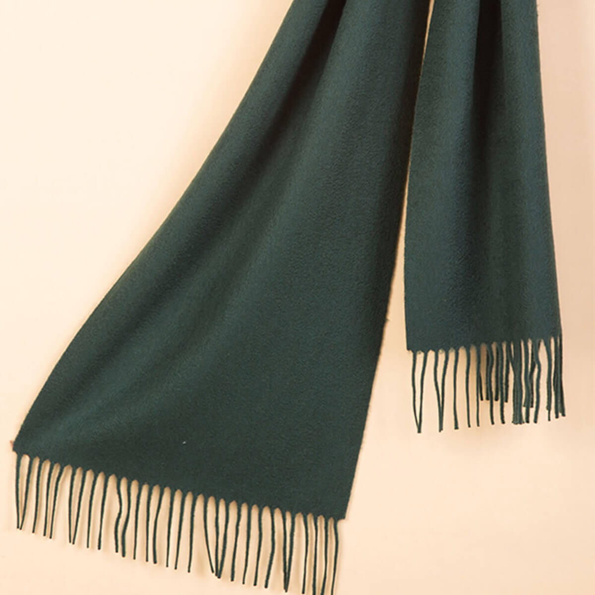 - Ultra cozy and warm, enjoy a warm winter with this beautiful dark green cashmere scarf.