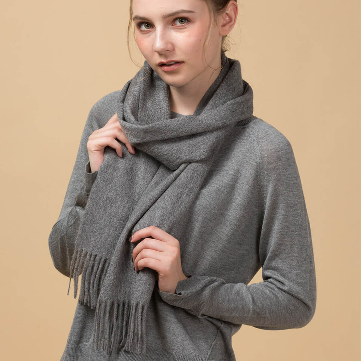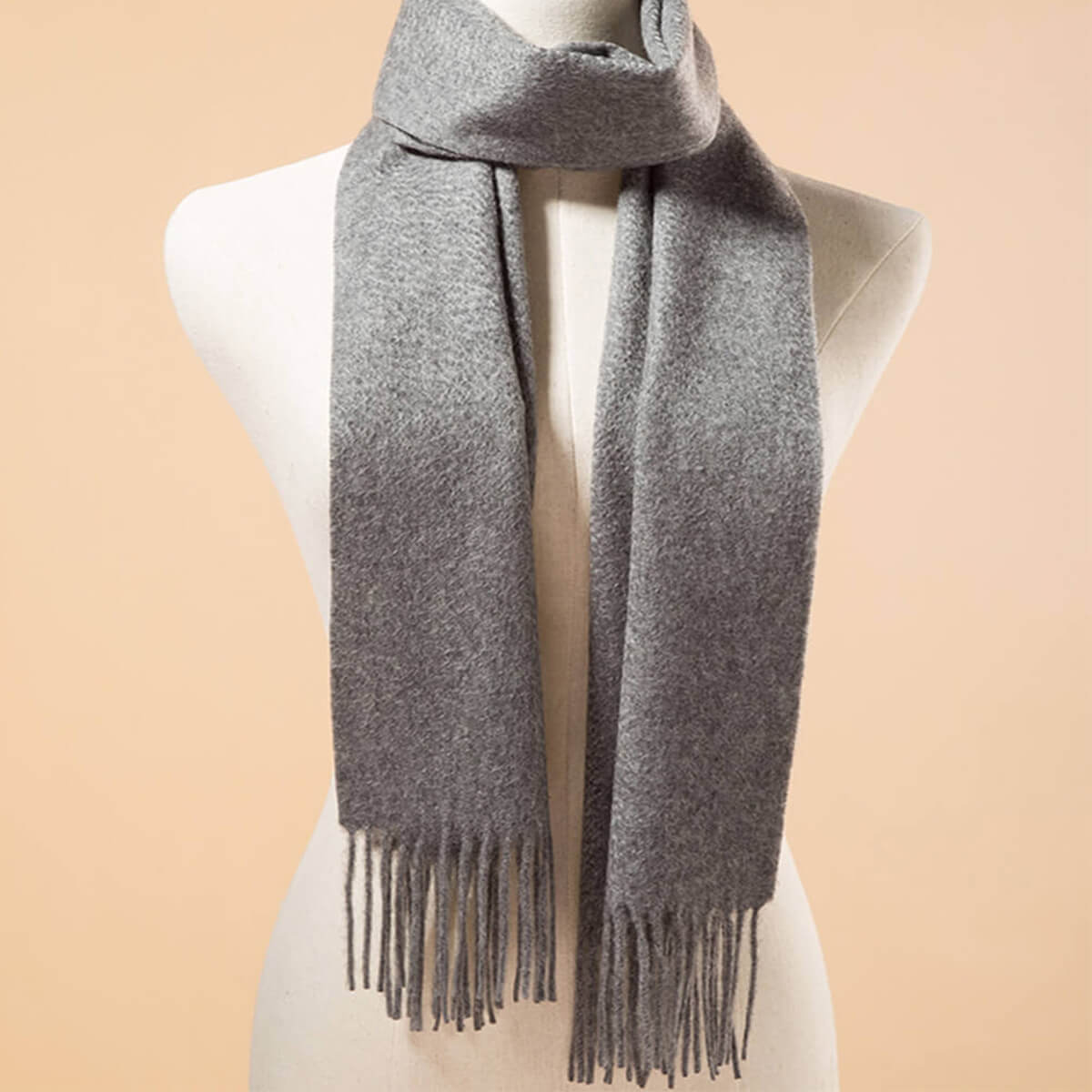 - Ultra cozy and warm, enjoy a warm winter with this beautifulĀ grey cashmere scarf.