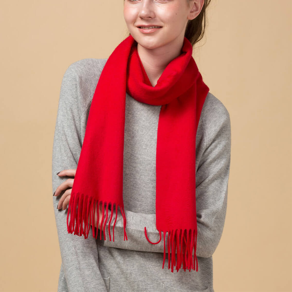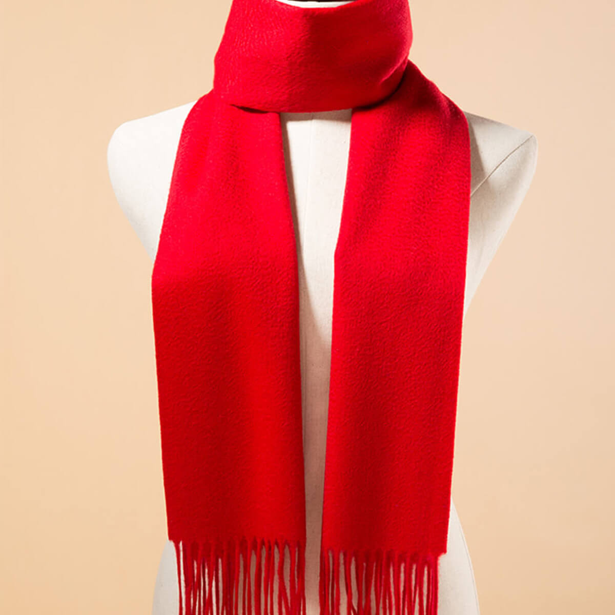 - Ultra cozy and warm, enjoy a warm winter with this beautiful red cashmere scarf.