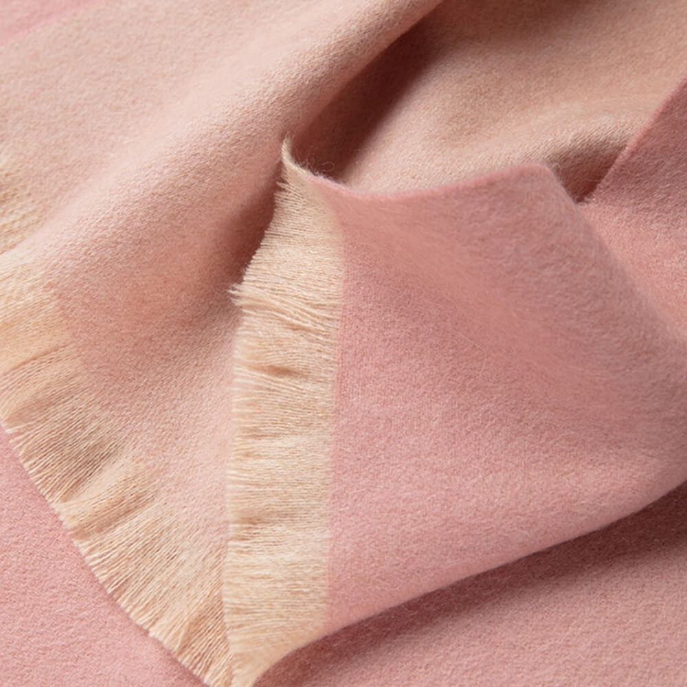 The double-faced cashmere scarf is made of pure cashmere. The color is natural and soft, very soft, and it is lighter and more convenient to wear. The color matching adopts a unique double-sided two-color, simple design, a scarf is equivalent to two scarves, easy to create a fashionable effect. In this winter, you need this double-faced cashmere scarf.