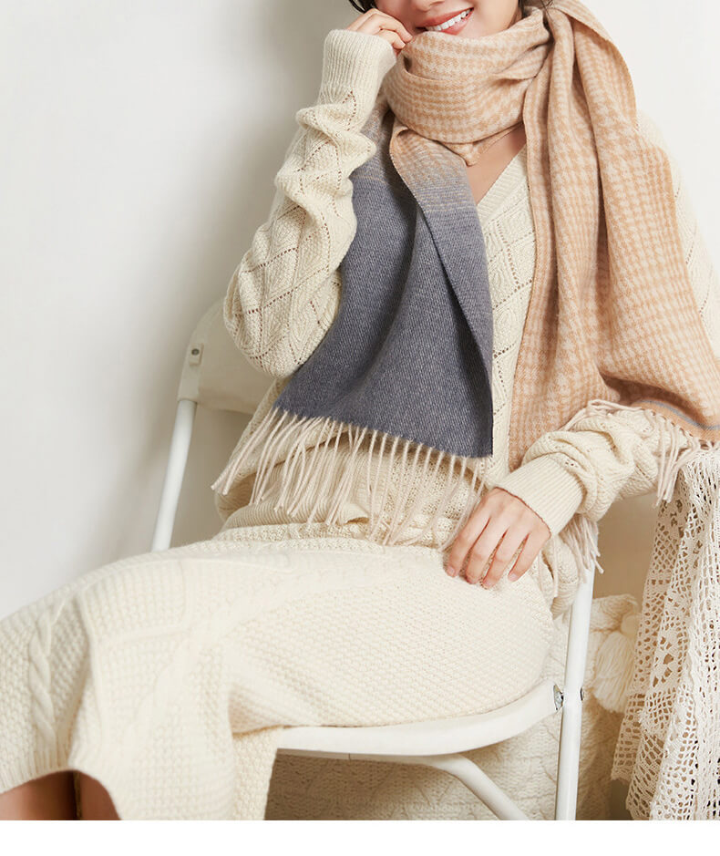 Full-size women's color gradient plaid cashmere scarf 30x 196 cm/ 12 x 78 inches and weight 160g / 5.6 oz.