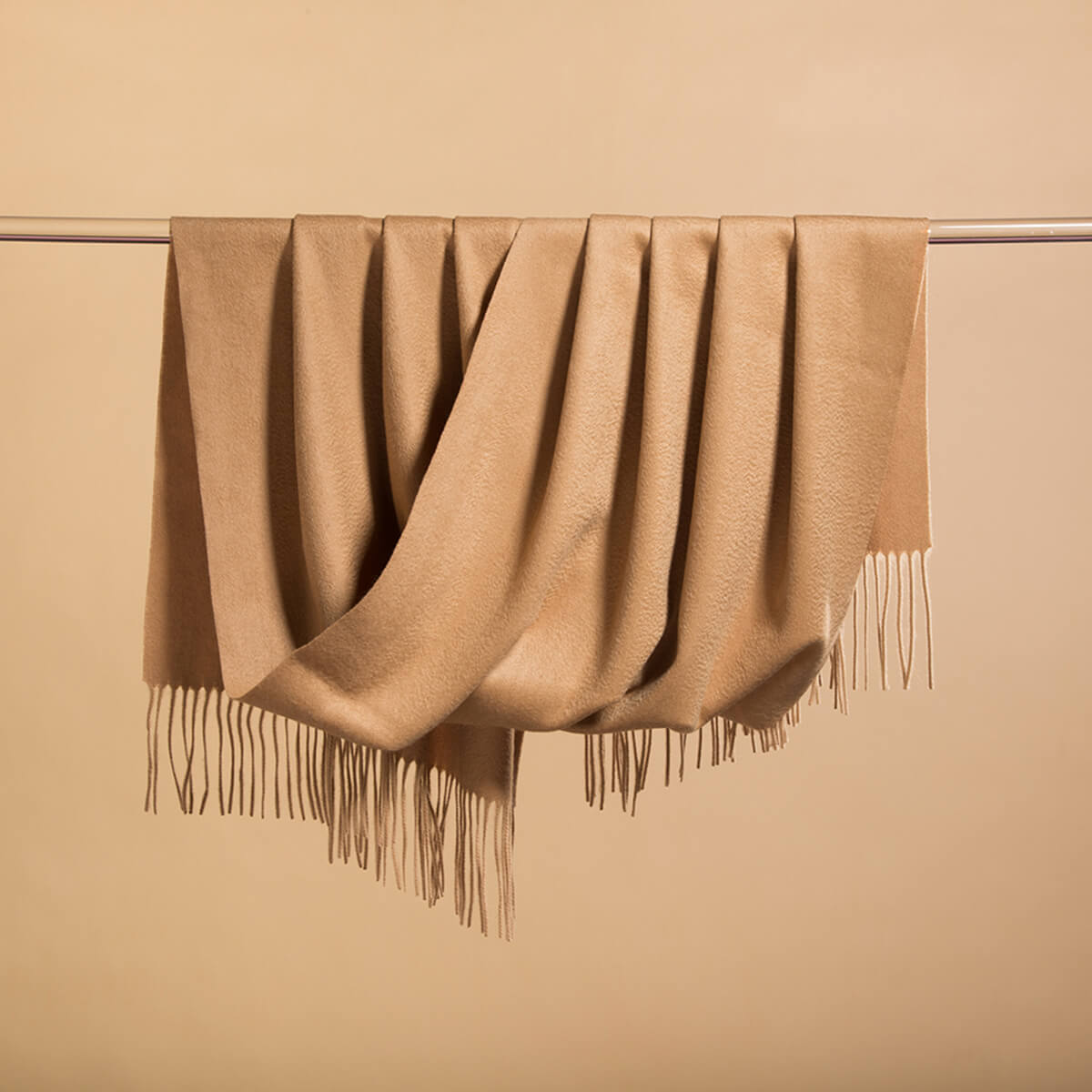 - Ultra cozy and warm, enjoy a warm winter with this beautiful Camel cashmere scarf.