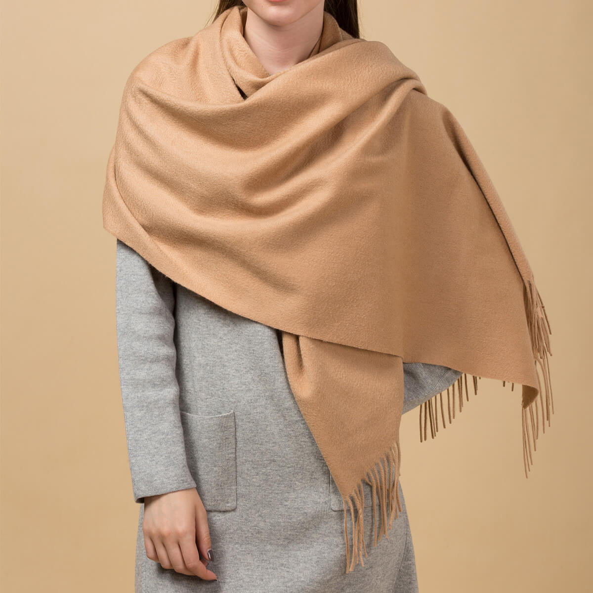 - Full-size Camel cashmere scarf womens 70 x 200 cm/Ā 28 xĀ 80 inches and weight 10.75 oz..