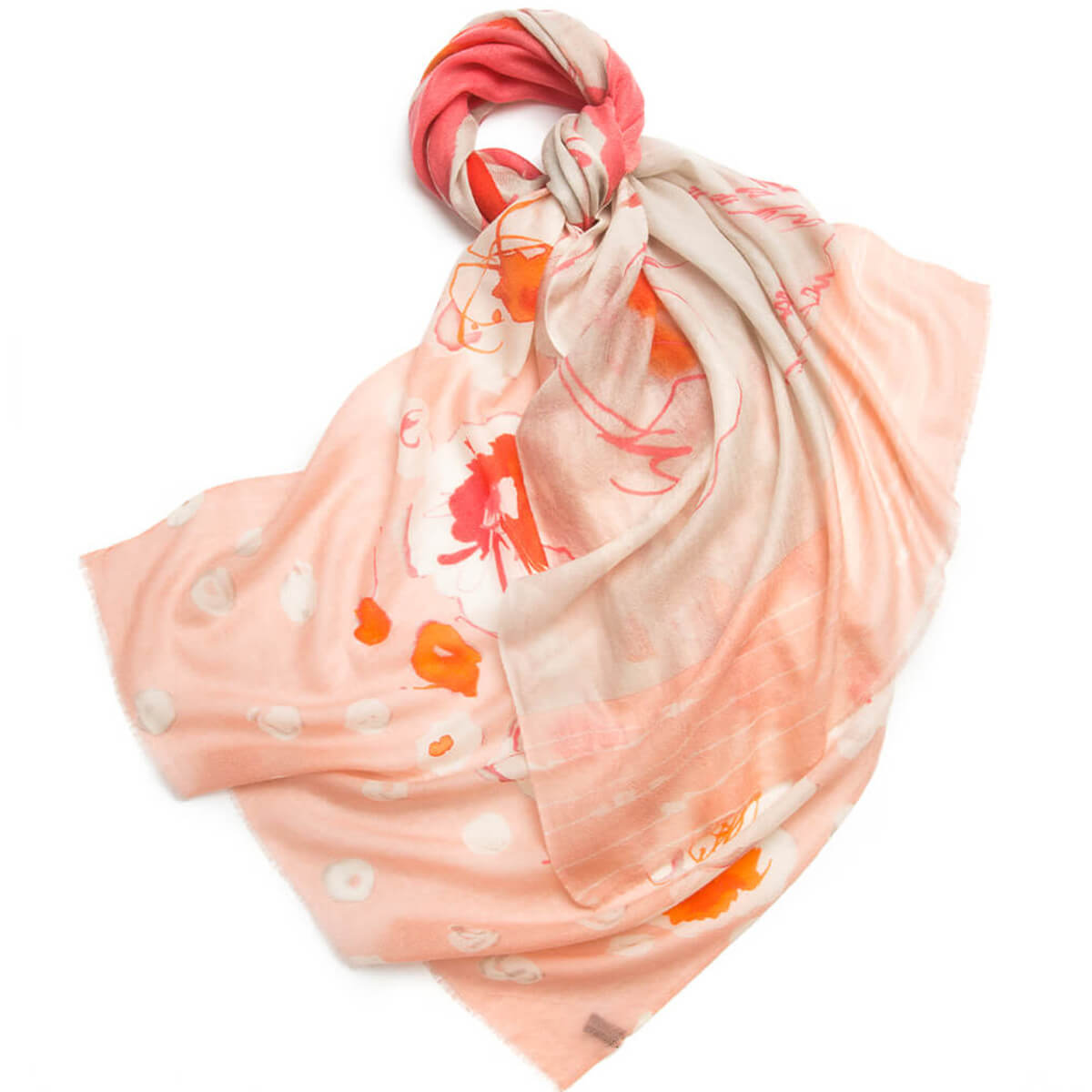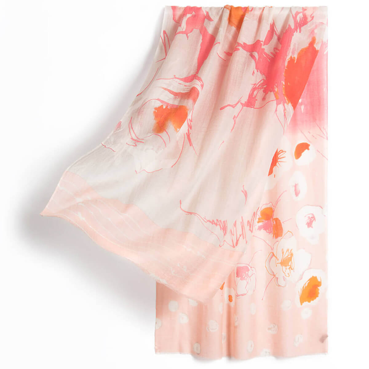 Rosa bedruckter, leichter Schal aus 100er-Kaschmir