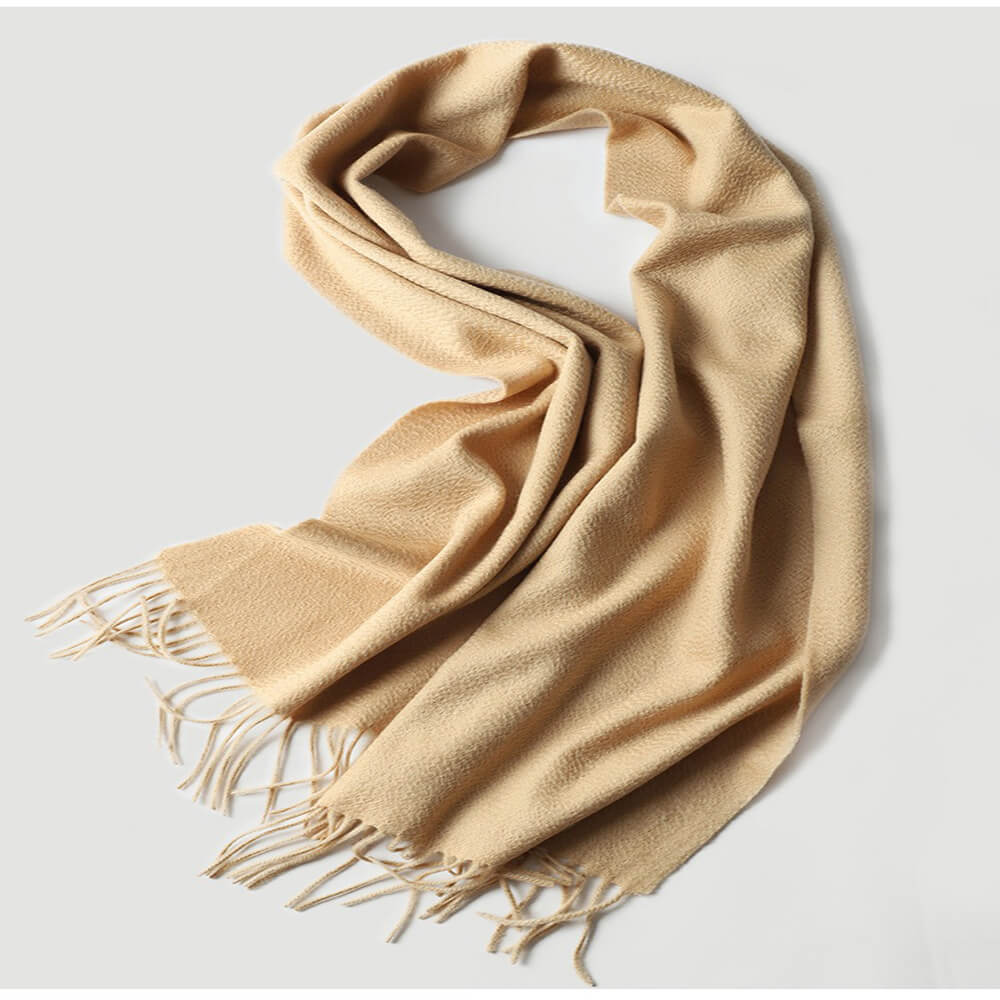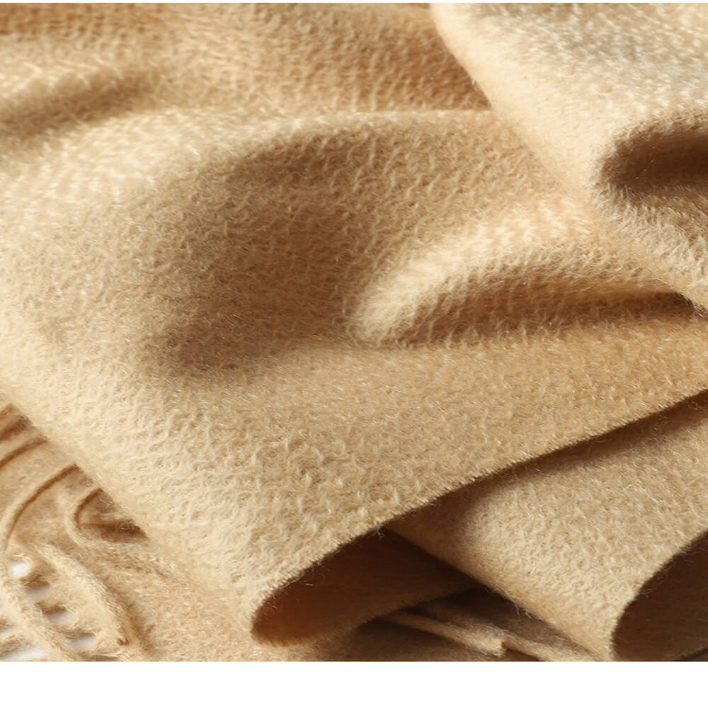 Klassischer wassergewellter Kaschmir Kamel Farbiger Schal, hergestellt aus 100 % Kaschmir aus der Inneren Mongolei, weiche und zarte Textur, natürlicher Glanz, klares Wassermuster, dicker Wollstoff, modisch und warm nach dem Tragen, dünner und weicher.
