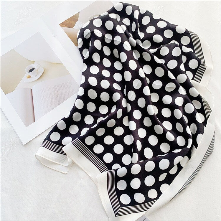 Schwarz-weiße Vintage-Bandanas, quadratische gepunktete Schals für Damen, 68,6 cm
