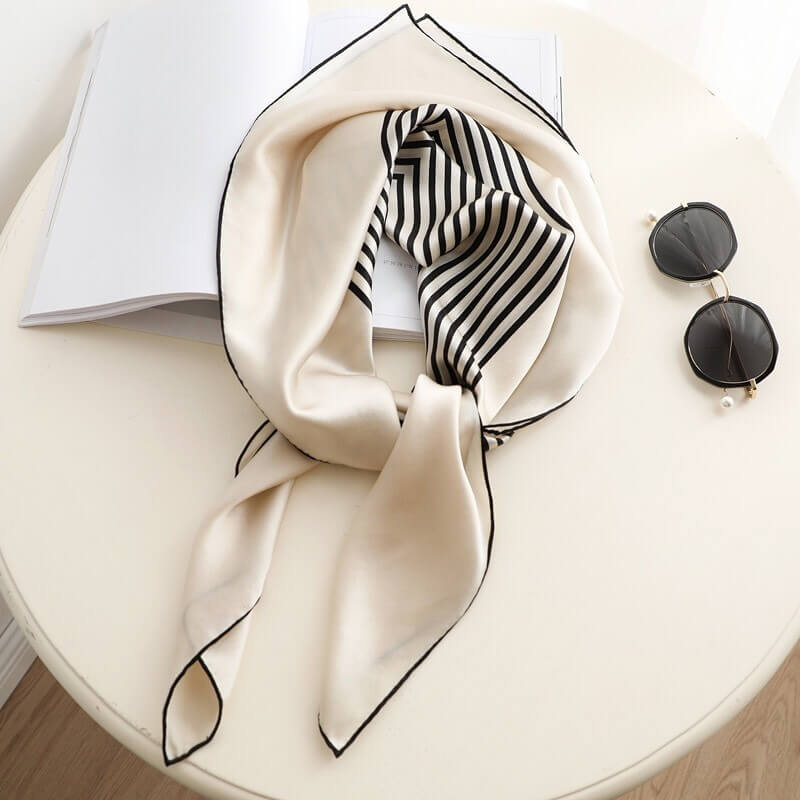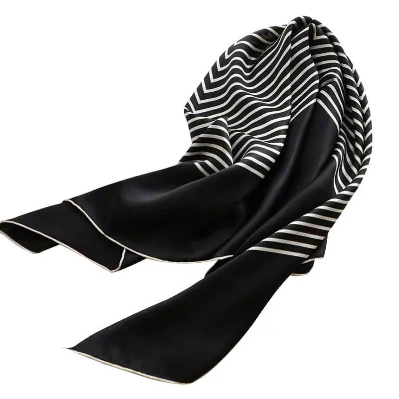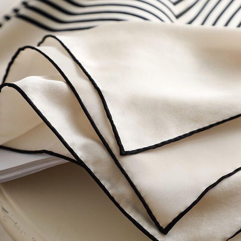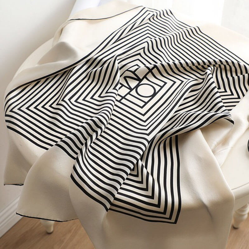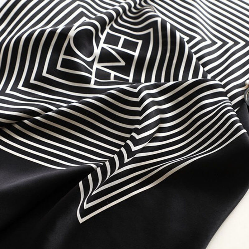 Bufanda cuadrada de seda grande con rayas geométricas a rayas blancas y negras de 35 pulgadas