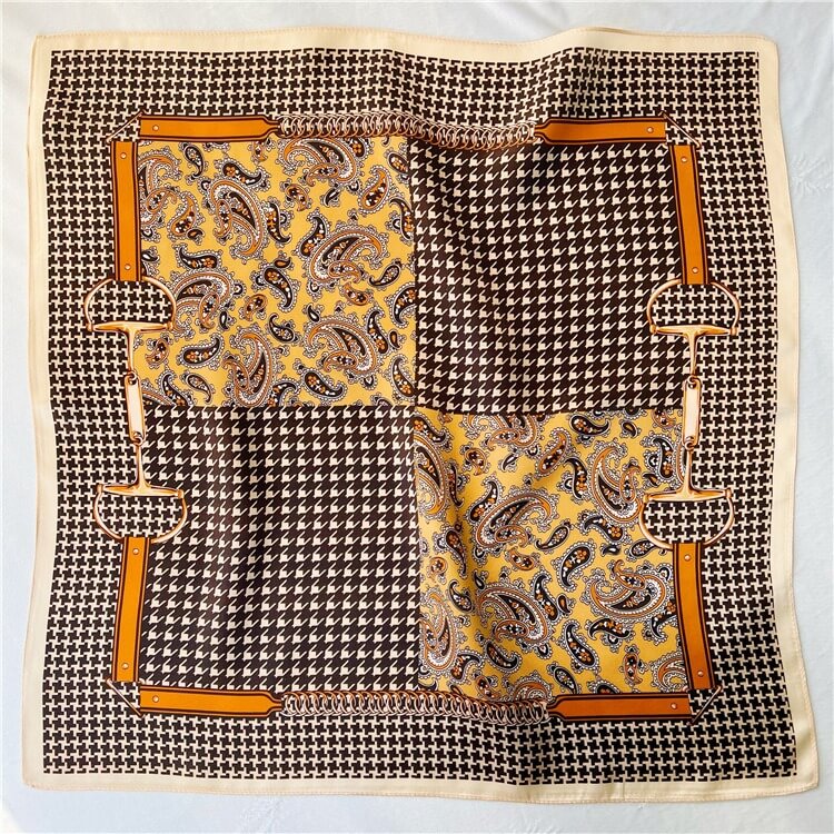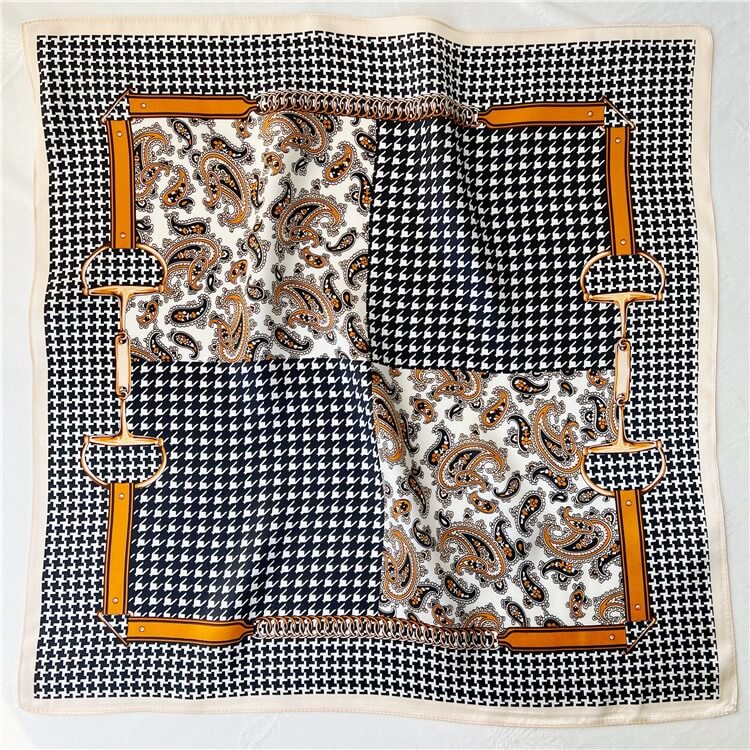 Bufanda cuadrada de seda de morera pequeña con estampado de anacardo, 21" - 12 momme