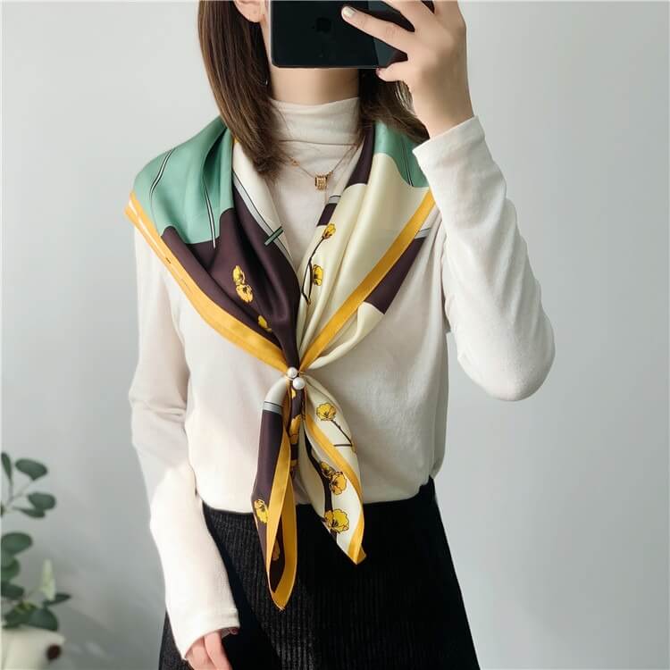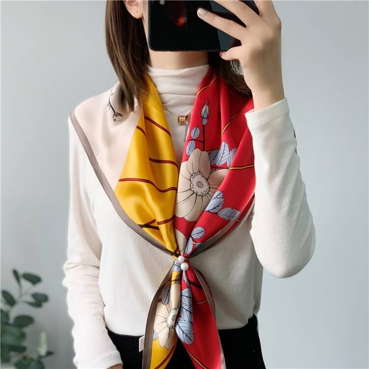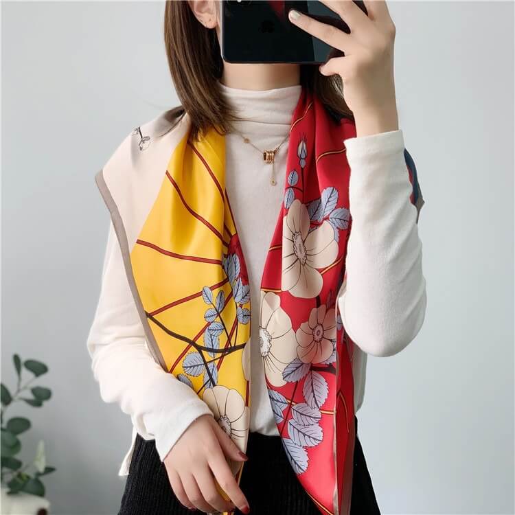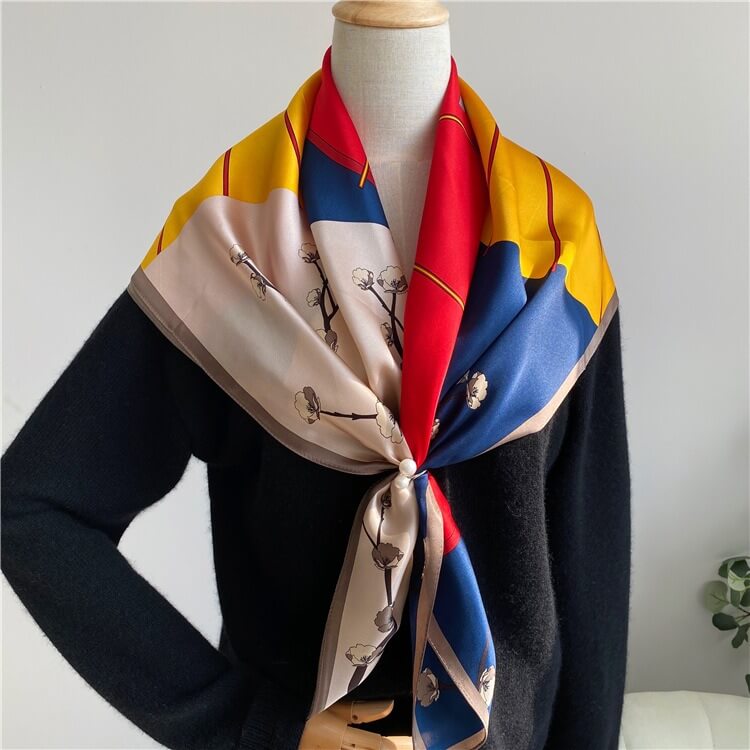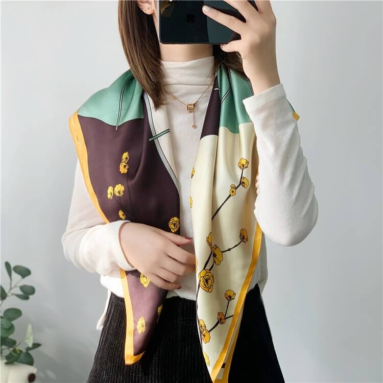Bufanda de seda de morera floral con retazos de moda 35 pulgadas 14 momme