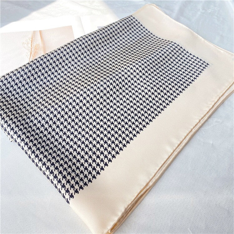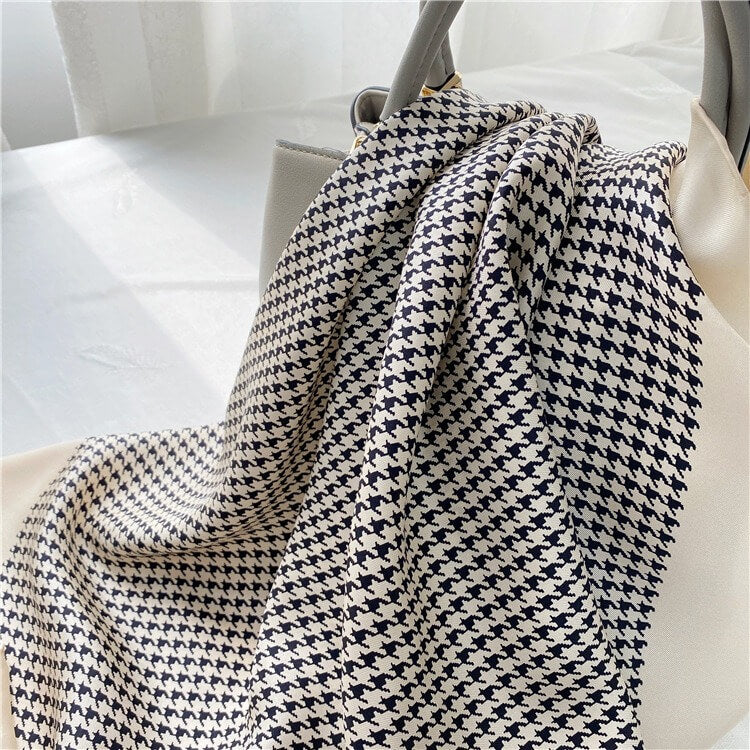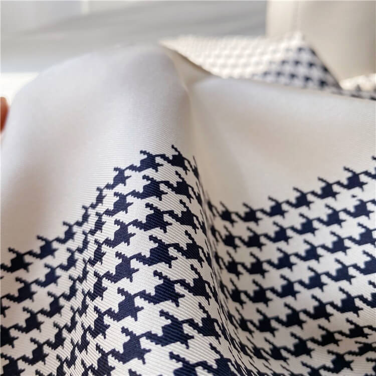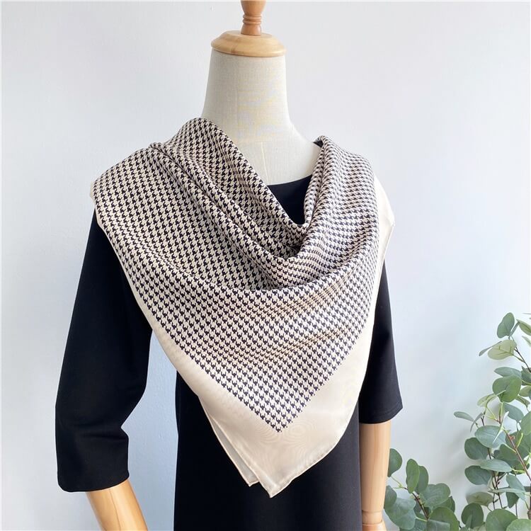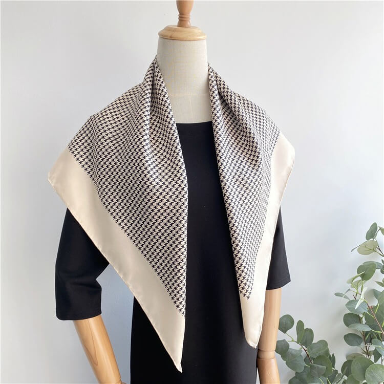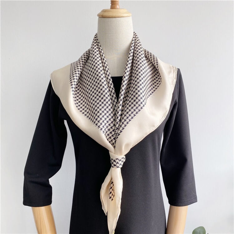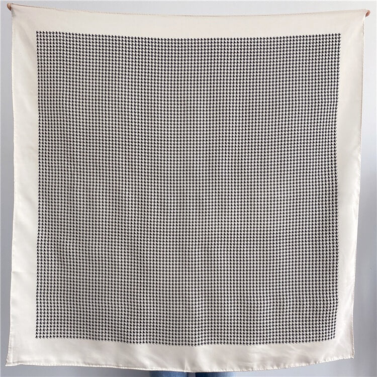 Bufanda cuadrada de seda de sarga francesa en blanco y negro de pata de gallo 35 pulgadas 14 momme