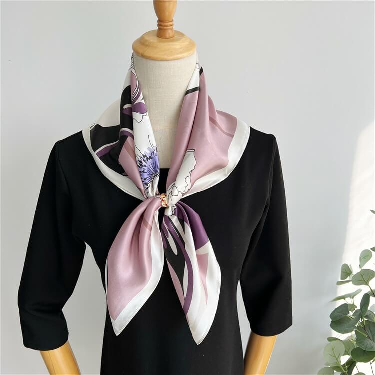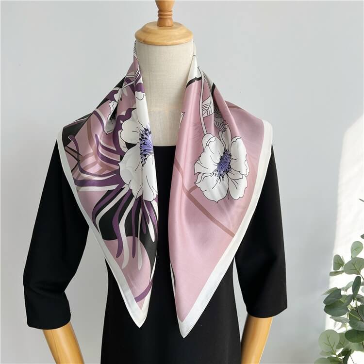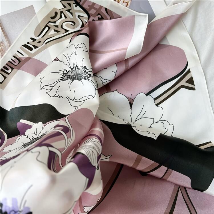 Bufanda de seda estampada rosa Bufanda de seda floral - 12 momme