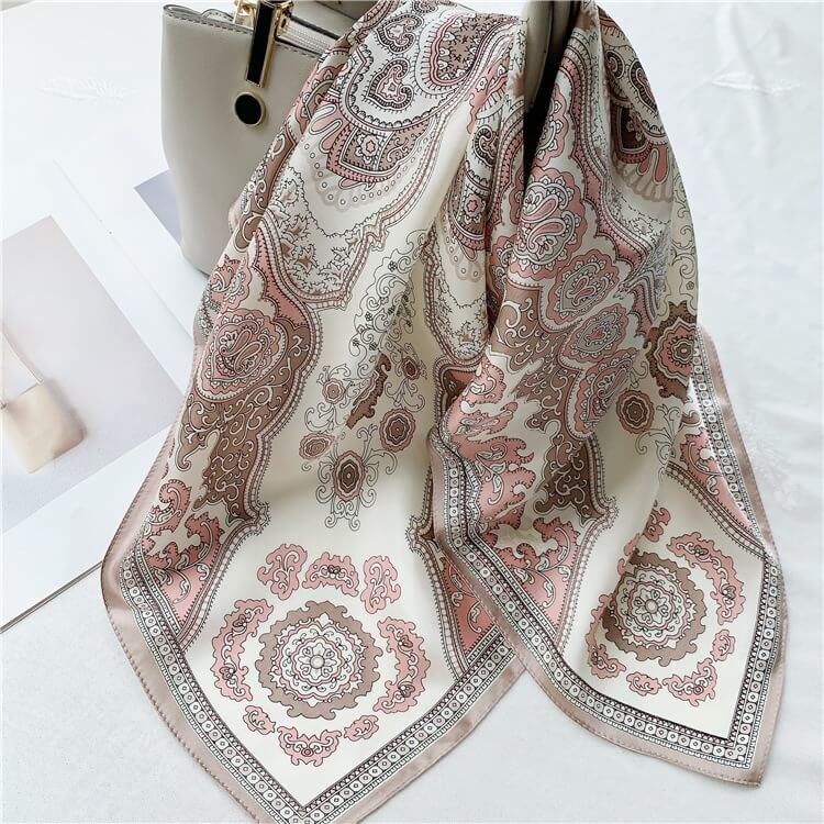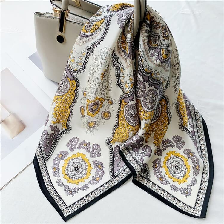 GRAND BANDANA CARRÉ EN SOIE – Dimension : 27'' x 27'' pouces/65*65 cm.