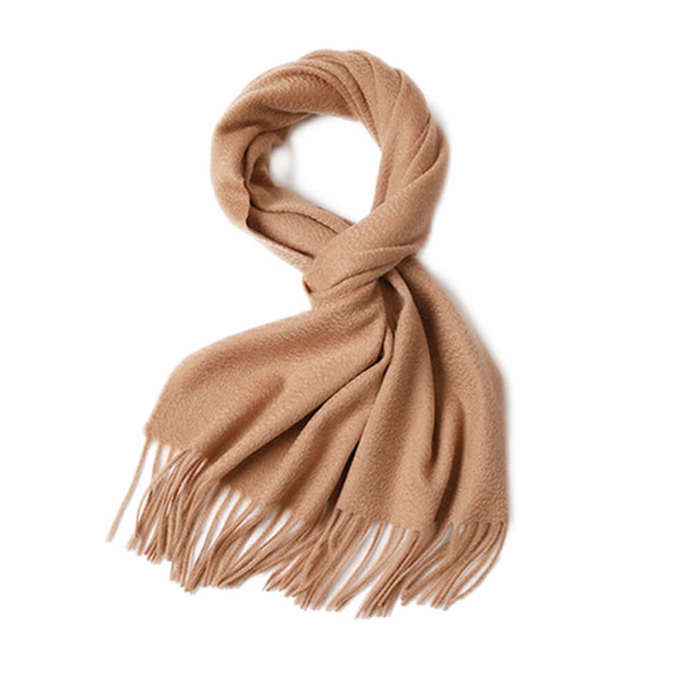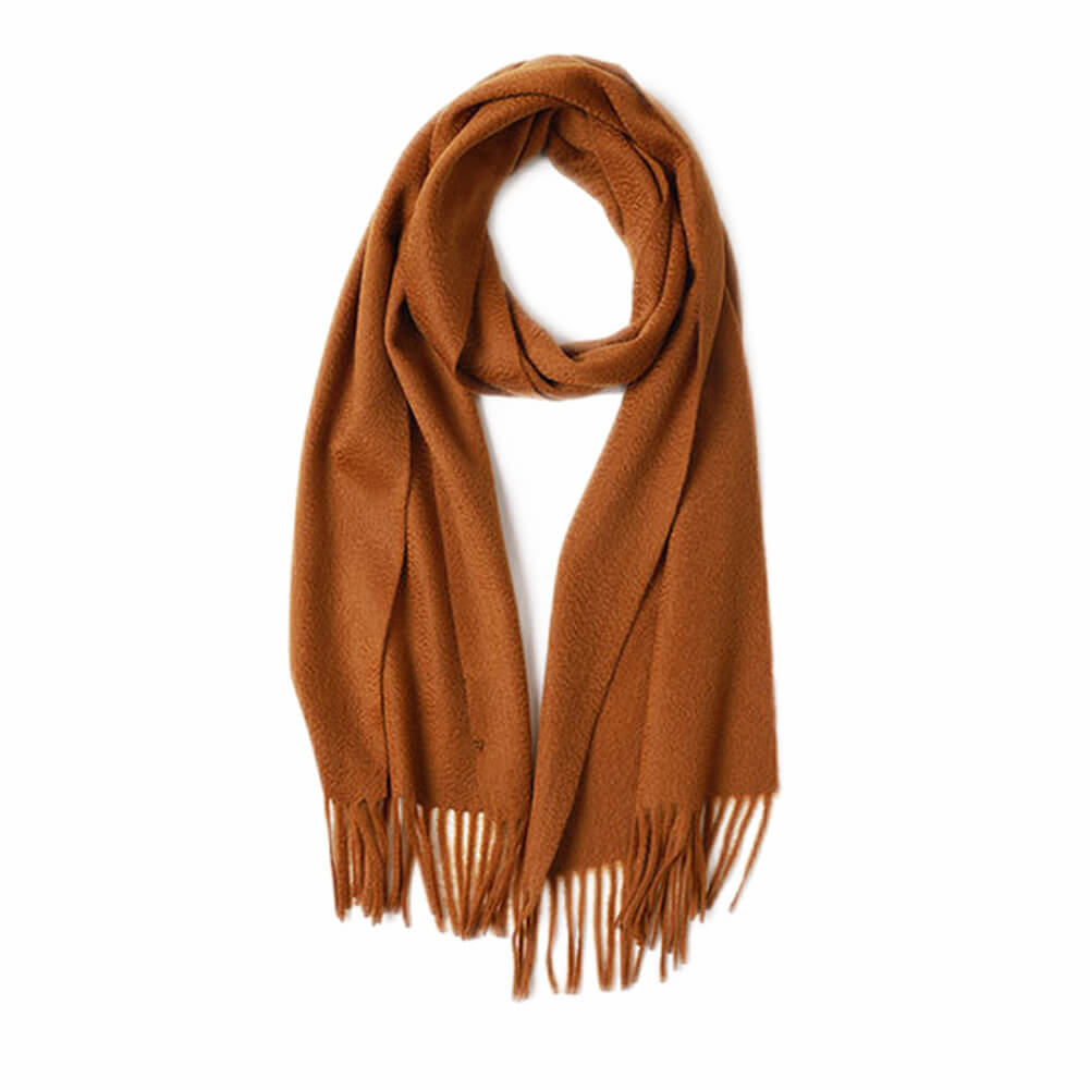 Écharpe à franges ondulées en cachemire Camel