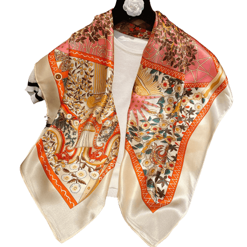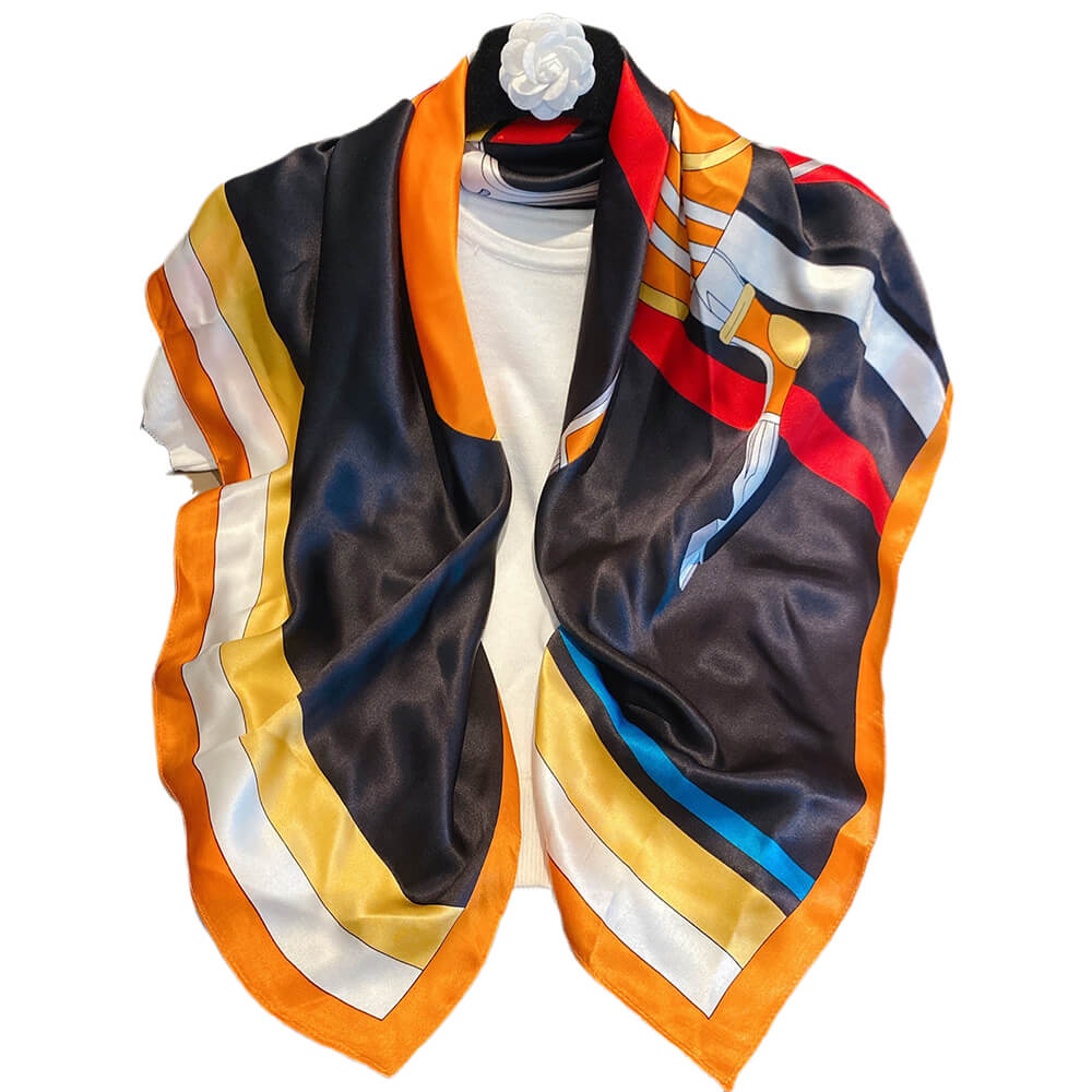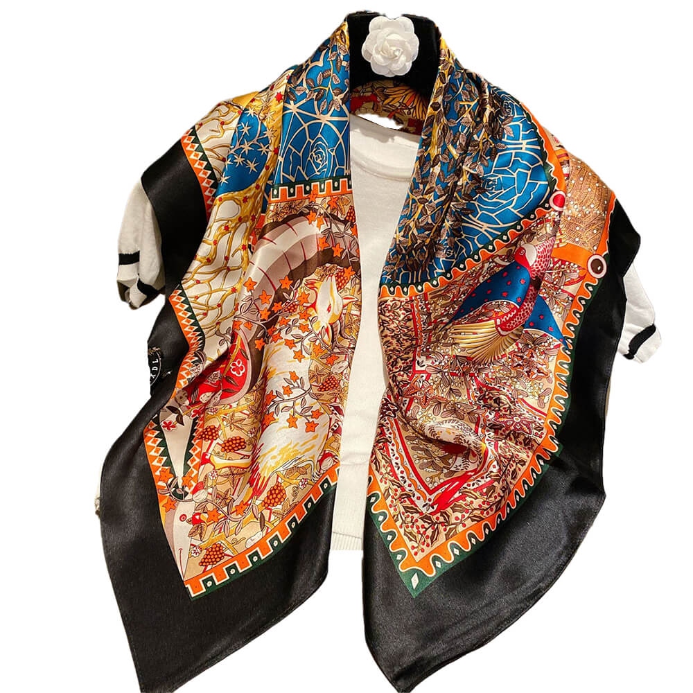 Accessoire parfait : ce foulard en soie présente un imprimé coloré. Parfait pour assortir toutes les tenues de la vie quotidienne, des fêtes, des mariages, des voyages, des cérémonies et des soirées fraîches.