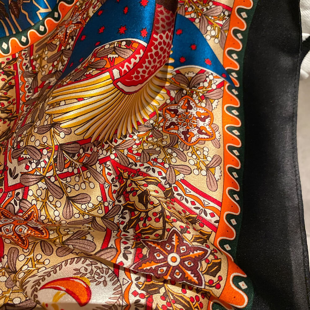 Évitez que les foulards ne soient happés par les clous, les broches et autres objets durs. Évitez de contaminer directement le foulard en soie avec du déshydratant, des cosmétiques, du parfum, etc.