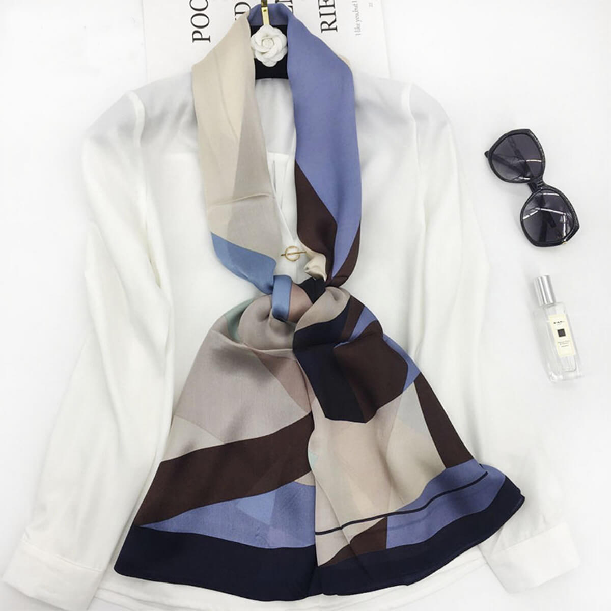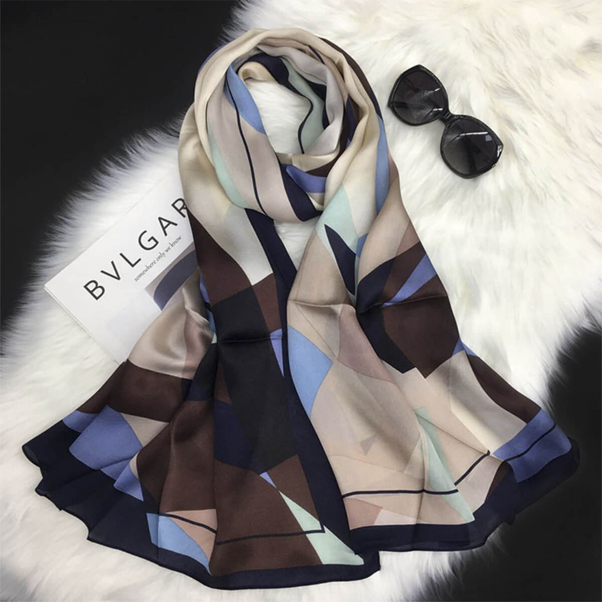 Grande écharpe géométrique en soie imprimée 70" X 25"