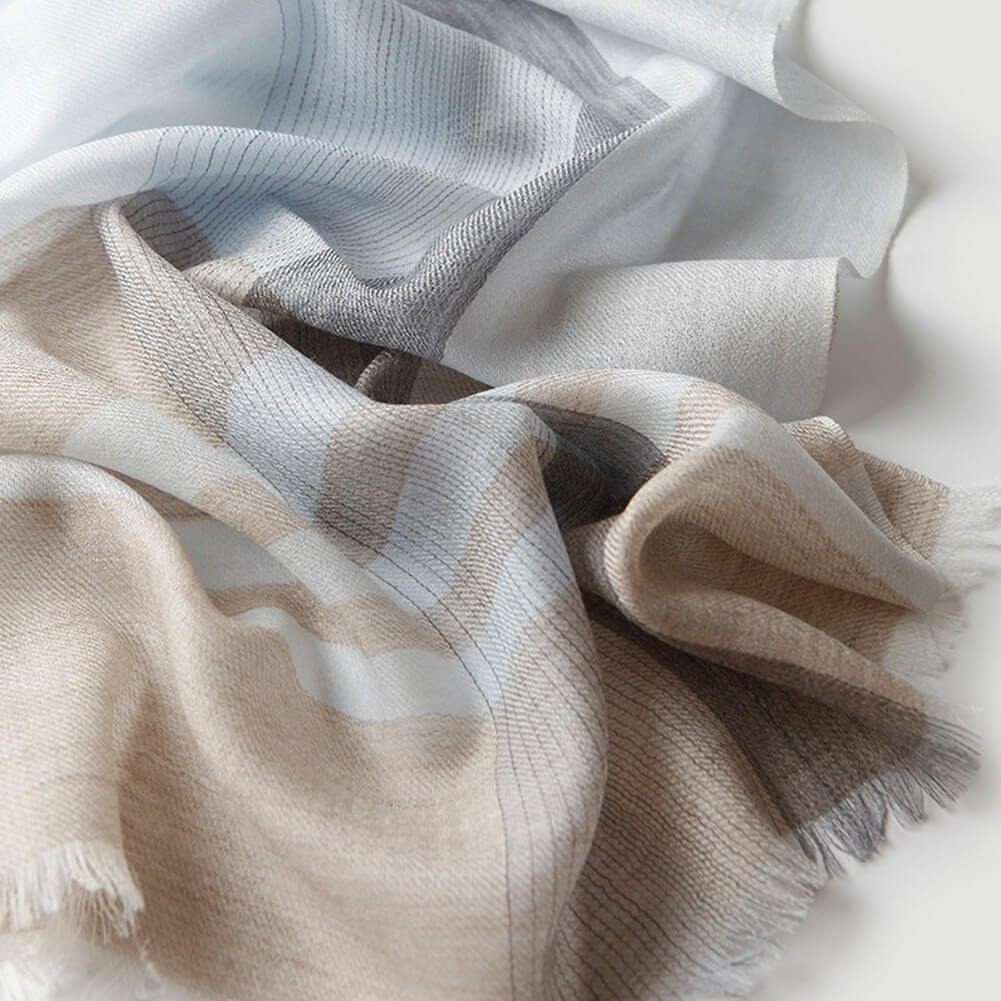 L'écharpe en velours à anneaux représente le plus haut niveau de savoir-faire en cachemire. Il est extrêmement léger, fin, doux et chaud, et peut facilement passer à travers un petit anneau, d'où le nom de ring velours.