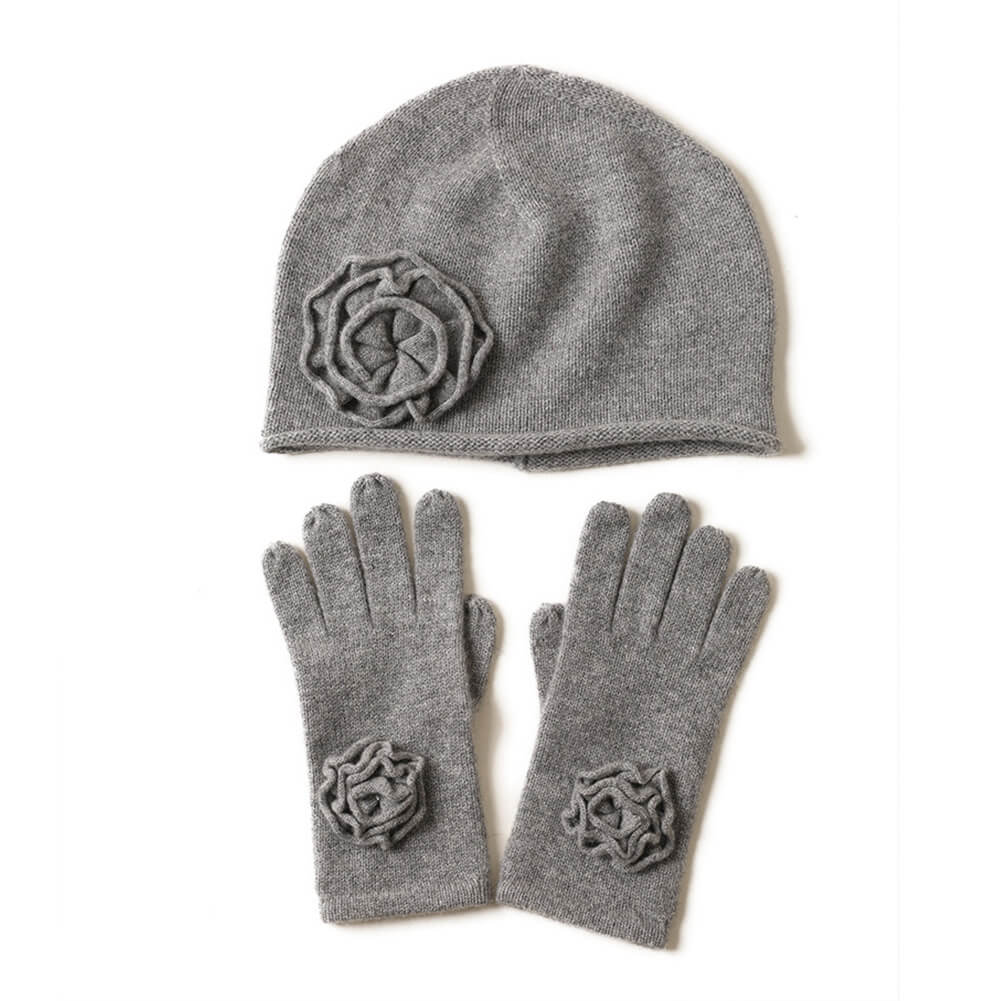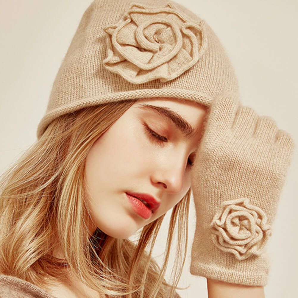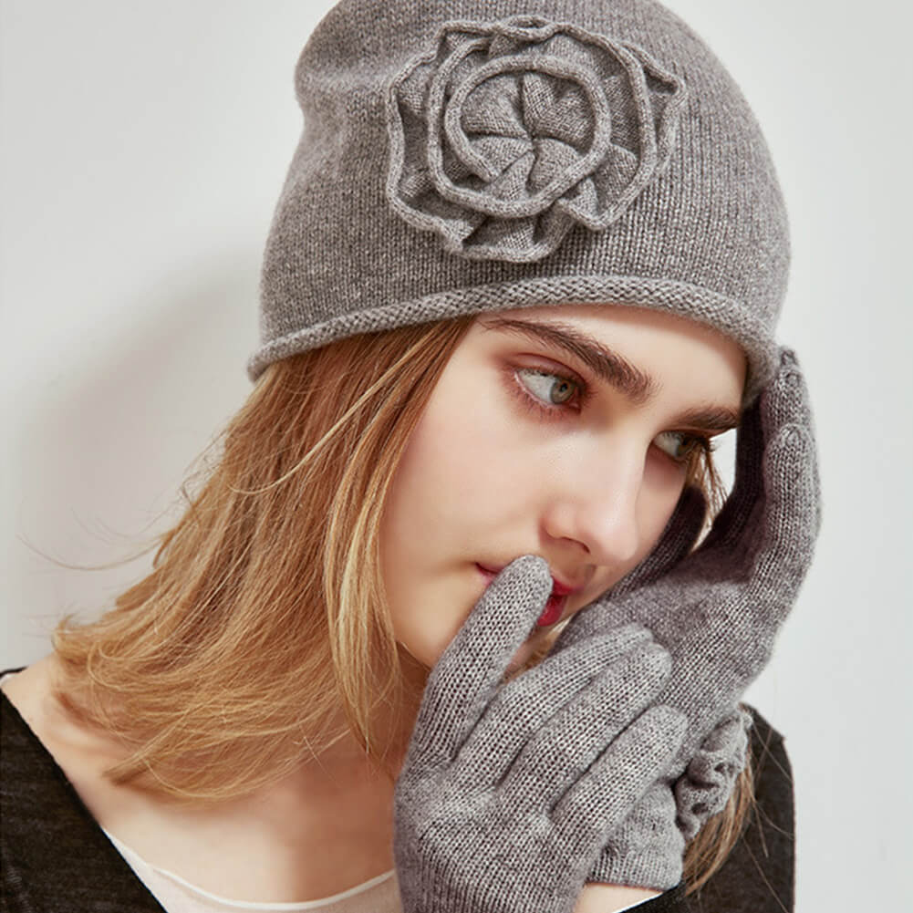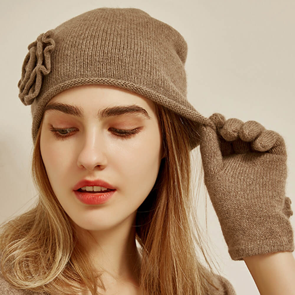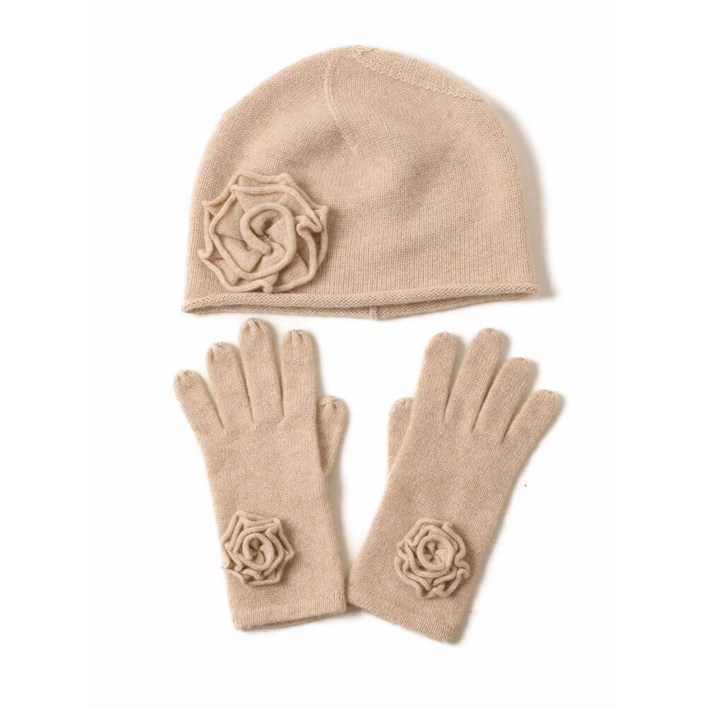 Ensembles de gants en cachemire avec chapeau en cachemire rose tricoté