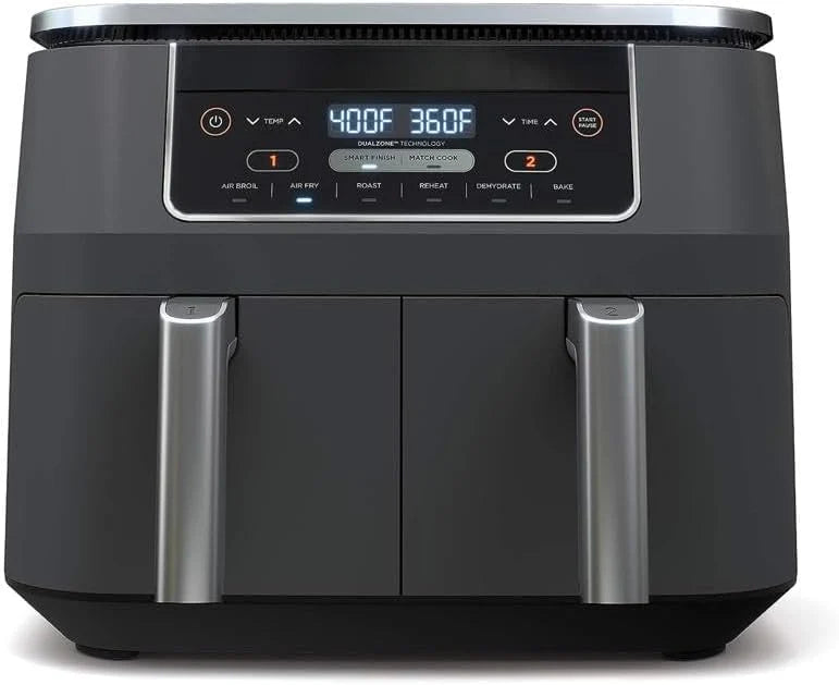 10 Quart 6-in-1 DualZone XL 2-Basket Air Fryer with 2 Independent Frying Baskets, Match Cook & Smart Finish to Roast, Broil, Dehydrate for Quick, Easy Family-Sized Meals, Grey – SUNXZZ